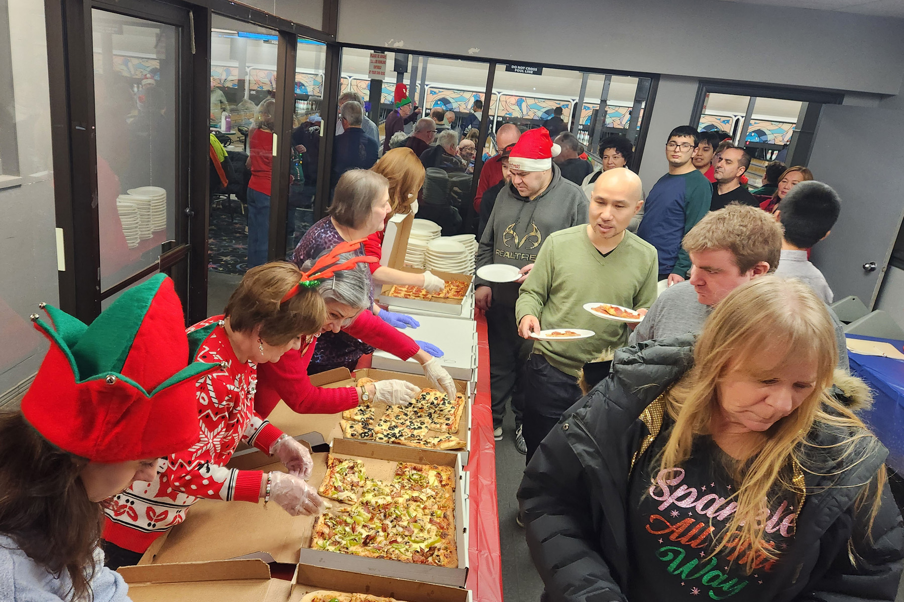 Rexdale Bowlerama was alive with excitement as players, families, coaches, and volunteers joined in the festivities. Bowling lanes buzzed with friendly competition and cheers, while holiday tunes added to the festive atmosphere. Everyone enjoyed delicious pizza, savoury samosas, and festive cake, all served up with smiles by Santa’s little helpers.